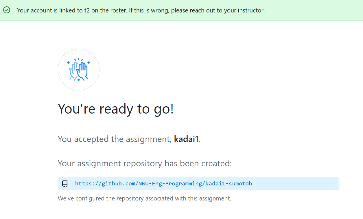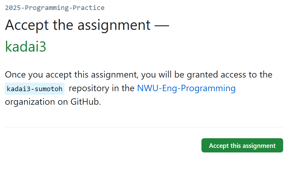GitHub Classroomへの接続が2回目以降の場合,上記のような画面が表示されます.