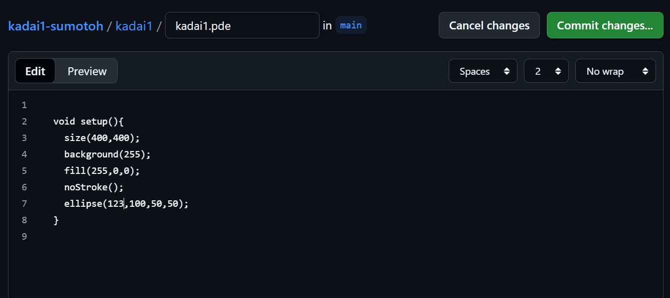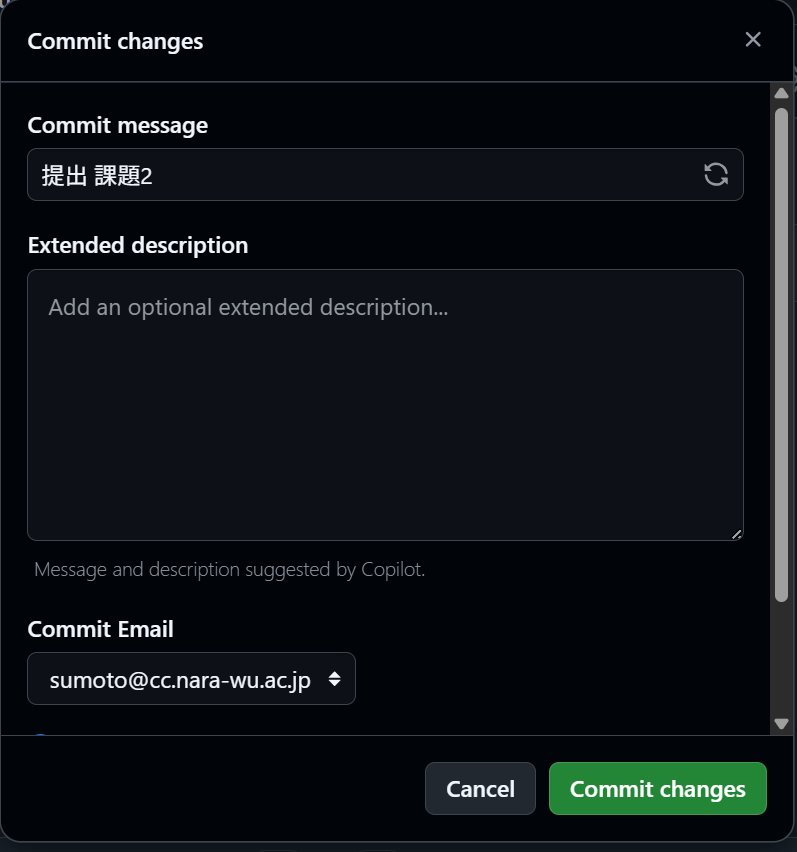 編集したあとは,提出時と同様にCommit Changesを押して保存&提出してください.