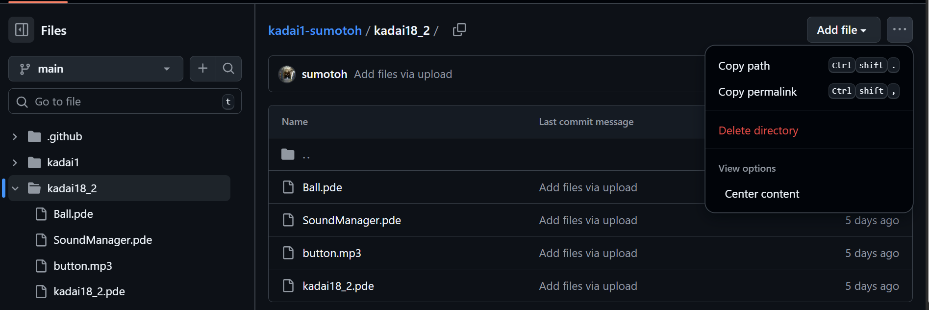 このリポジトリをcloneして,Processingコードをpushすることでも勿論提出可能です. gitに慣れている方,CLIのほうが肌に合う方はこちらの方法を使用してください.